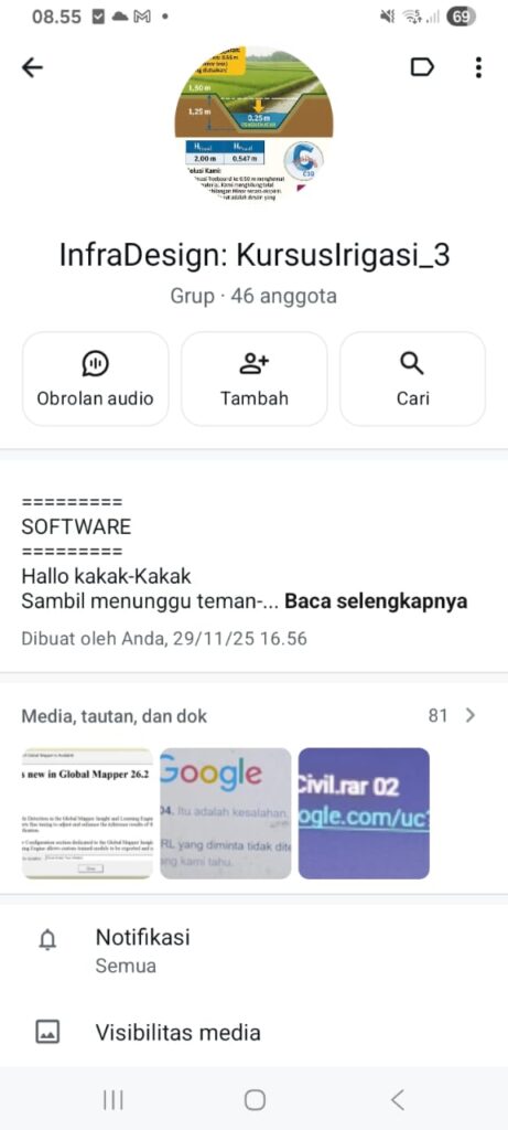 - Dapat Software Civil 3D, global mapper, google earth;